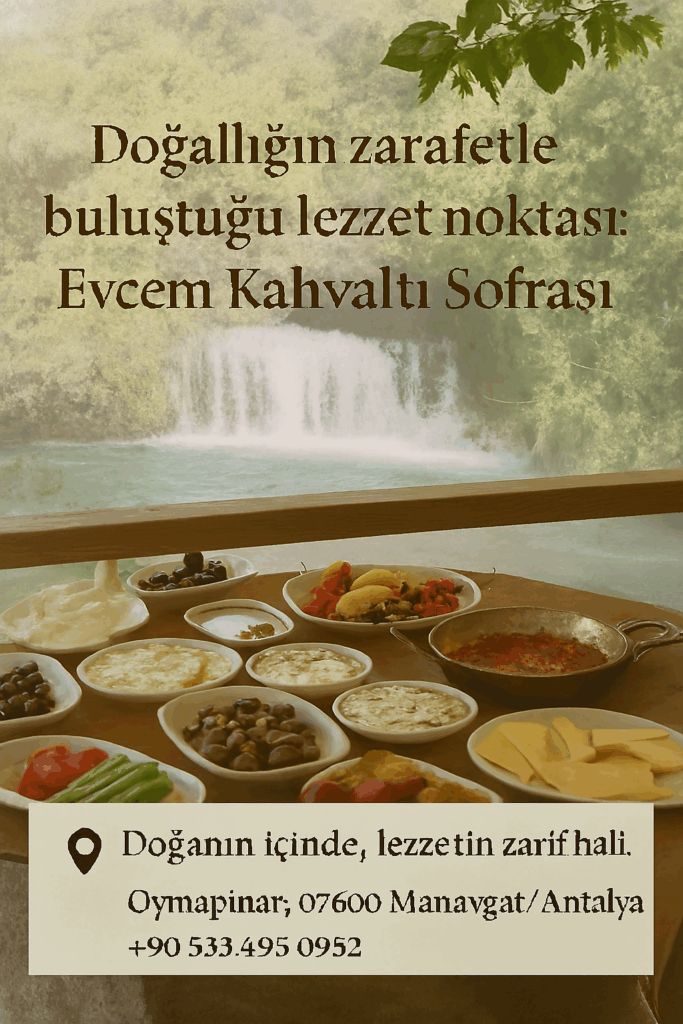 Manavgat’ın eşsiz doğasında, Oymapınar’ın huzurlu atmosferinde yer alan Evcem Kahvaltı Sofrası; doğanın tüm güzelliklerini sofranıza taşımak için kuruldu.